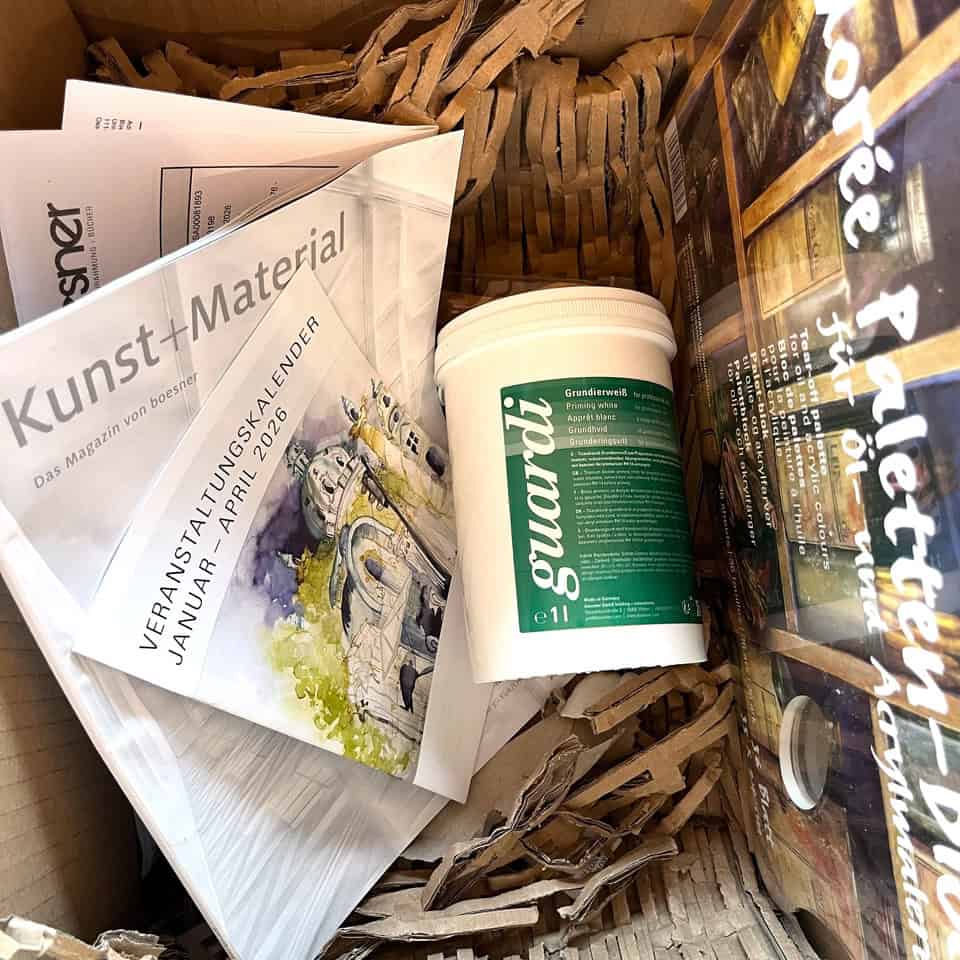Der Paketzusteller kommt und bringt mir den ersten Teil meiner Bestellung vom Kunstmarkt. Ein paar Materialien waren ausgegangen.  Die Leinwände fehlen noch. Dann kann ich weiter malen und mich auf die kommenden Ausstellungen vorbereiten.