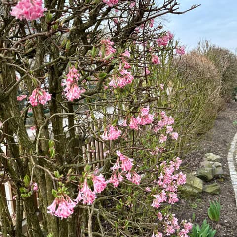 Und wie farbenfroh! Die blühenden Sträucher trotzen der Frühlingsfrischen Kälte, das überrascht mich jedes Jahr aufs Neue!