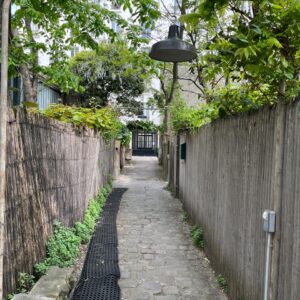 Das Besondere an der Location war, dass es sich dabei um eine Art Künstlerviertel mitten in Paris handelte – weg von der lärmenden Straße weg – durch einen Hauseingang – und plötzlich der kleine grüne Weg mit den Zugängen zu Ateliers mit kleinen Gärten davor. Ein wahres Paradies für Künstler. Leider waren es gerade die Osterfeiertage und ich traf, wie gesagt, die Künstlerin nicht an. Dafür aber zwei ihrer Nachbarinnen. Lustige, bunt bekleckste Ladies, die nur Französisch sprachen. Trotzdem – manchmal ist eine gemeinsame Sprache gar nicht so wichtig – unterhielten wir uns gut und hatten Spaß. So war ich also nicht enttäuscht, sondern schlicht begeistert, welch tolle Plätze es für Künstler in einer Großstadt geben kann.