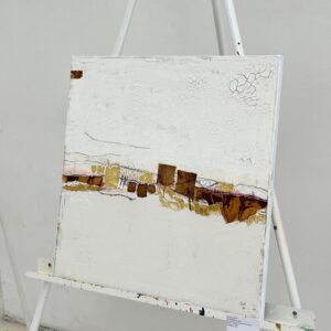Stimmungsvoll war die Ausstellung im Kunstsalon mit den ovalen, barocken Fenstern, dem alten Bretterboden und den dicken Schlossmauern. Ein bisschen leid tat es mir schon, Abschied nehmen zu müssen, aber es bestand ja bereits Anfang des Jahres die Möglichkeit, dass sich wieder Neues auftut. Genauso war es dann auch. Gegen Ende des Jahres kam die Ausstellungsausschreibung für 2026 – Art Award 2026 „Weniger ist mehr“. Das klingt sehr nach mir und ich habe vor, eine meiner Arbeiten einzureichen.
