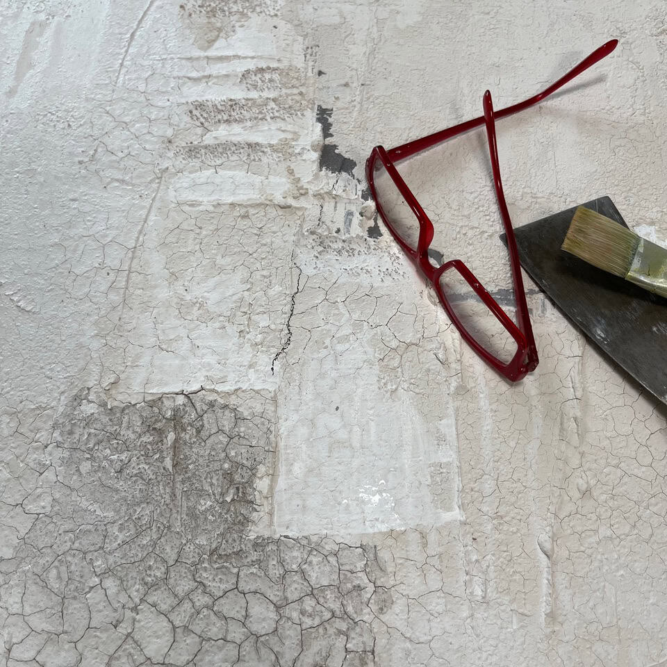 Eines Abends, nach dem Kurs, verschwand ich kurz im örtlichen Baumarkt, um mir Wandfarbe im Farbton „Hortense“ zu besorgen. „Hortense“ – klingt wunderschön. Und sieht auch wunderschön aus. Farbexplosionen gab bei mir nicht – das wäre auch ein Wunder gewesen. Ich übernahm etwas von der Großzügigkeit meines Lehrers und verwendete für mich ungewohnte Materialien wie dicke Kreidestifte und Fliesenkleber. Dennoch, ich schaffte es, meinem Stil, meinem farblichen Ausdruck und meiner Detailsprache treu zu bleiben. So konnte ich neu gewonnene Impulse mit meiner eigener Handschrift vereinen und Neues kreieren.